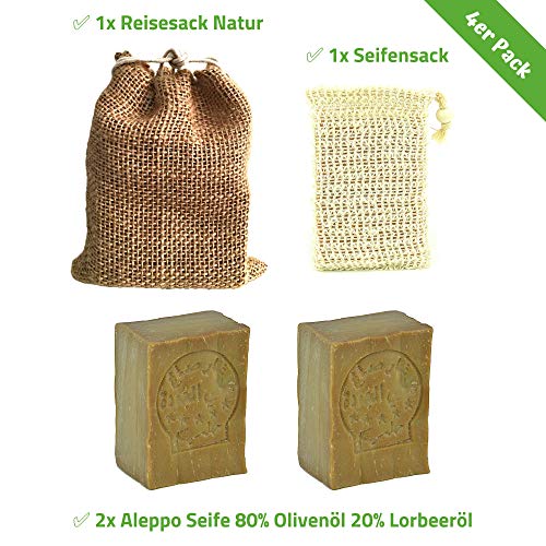 Aleppo zeepset 2x 80% olijfolie, 20% laurierolie, haarzeep, scheerzeep, geschikt voor onzuivere huid, handwerk en…