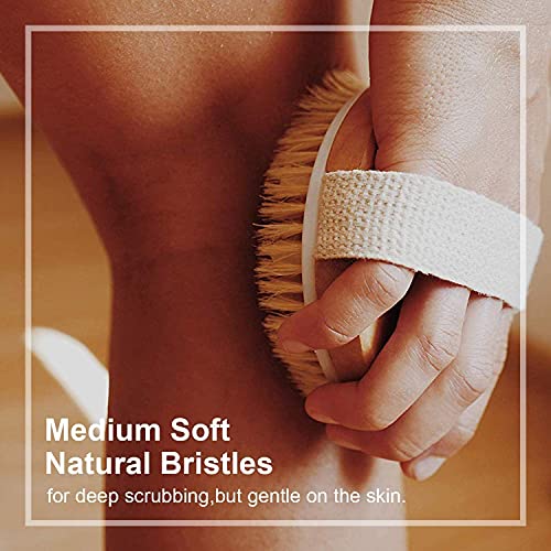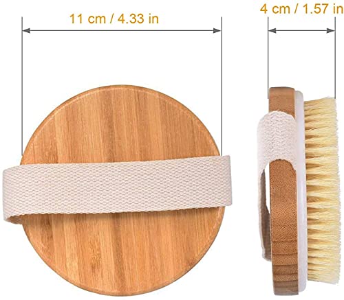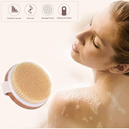 Body Brush Shower Back Scrubber- Droge exfoliërende borstel Natuurlijke haren Bamboe hout Ronde lichaamsborstels voor…