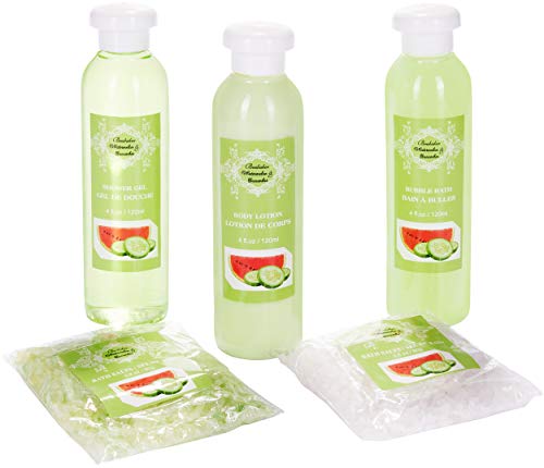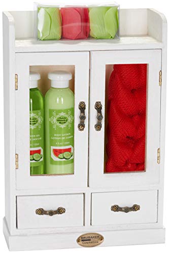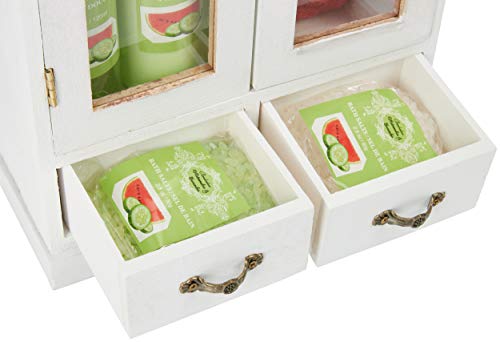 Specification: BRUBAKER Cosmetics – 10-delige bad- en verzorgingsset – watermeloen & komkommer – in vintage houten kast wit