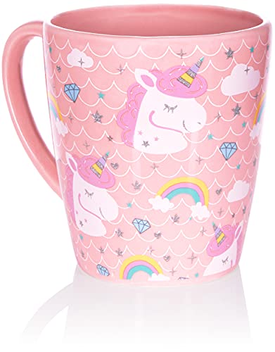 De lieve eenhoornmotieven met regenbogen, wolken en magische kristallen in vrolijke pastelkleurige snoepkleuren maken de grote eenhoorn-drinkbeker gewoonweg mega-schattig. Of het nu gaat om thee, warme chocolademelk of een grote portie warme “marshmallow eenhoornchocolade”: deze mok met handvat heeft alles in huis om de meest gewilde kandidaat uit de kast te worden en zal je ‘s ochtends zeker in een goed humeur brengen .