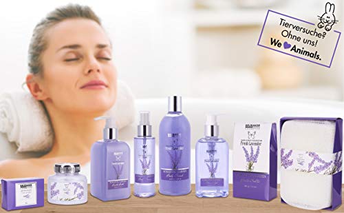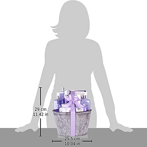 BRUBAKER Cosmetics “Fresh Lavender” bad- en doucheset – lavendelgeur – 9-delige geschenkset in een vintage plantenbak