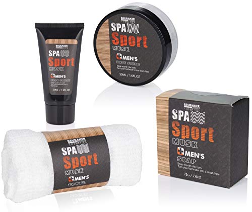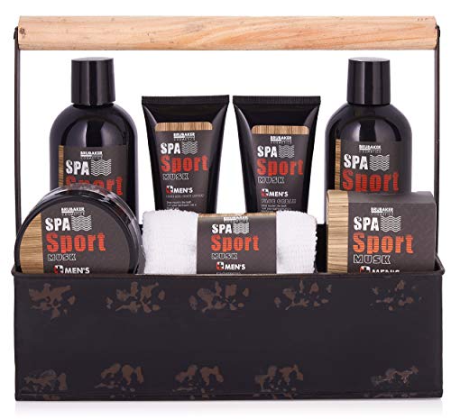 BRUBAKER Cosmetics Spa Sport Musk 8 St. Verzorgingsset Voor Mannen Met Douchegel Schuimbad Gezichtscrème Peeling…