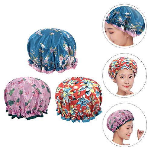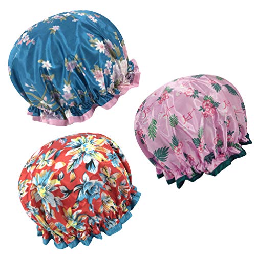 Cabilock 3 stuks douchemutsen waterdichte haarkappen satijn slaaphoed bouffant peeling caps slaapmuts hoed voor spa…