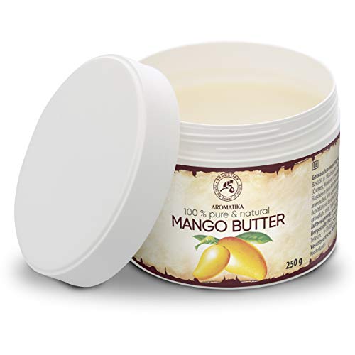 VOOR GEVOELIGE HUID – Bekend voor zijn hydraterende cosmetische doeleinden, maakt het de huid zacht, glad, vochtig, waardoor de mangoboter zeer geschikt is voor een droge, gerimpelde huid. Voor een bijzondere huidvriendelijke en milde verzorgingseigenschappen! DE basis in mengsels met etherische & basis oliën of voor de verrijking van cosmetische producten (crèmes, maskers, shampoo). De boter is voedzaam, verzachtend, reinigend, ontstekingsremmend en heeft anti-verouderingseffecten.
