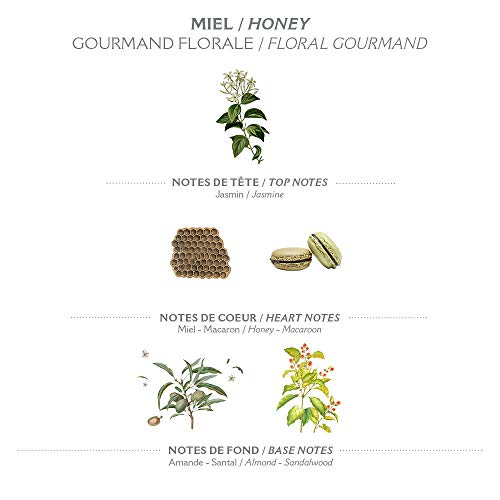 Flower and sweet perfume: creamy Honey sweetened with Almond blossom and Sandalwood.