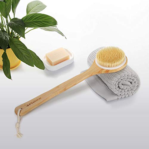 Philorn Doucheborstel, badborstel met 15,7 inch lange bamboe handgreep en natuurlijke beberborstel, rugborstel…