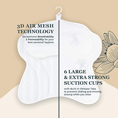 🛀 GENIET VAN EEN LUXUEUZE SPA-ERVARING IN UW EIGEN HUIS: Maak van uw badkamer een 5-sterren spa met ons ergonomische badkussen voor het hoofd, dat ondersteuning biedt voor nek en rug en een 3D gaas-luchttechnologie heeft.