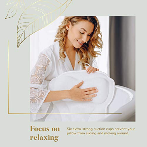 6 sterke zuignappen voorkomen wegglijden: ons badkussen beschikt over 6 sterke en antislip zuignappen, zodat je zorgeloos van je badkamer kunt genieten. Erger je niet meer over goedkope badkuipkussens, die voortdurend wegglijden en losraken van de rand van het badkuip.