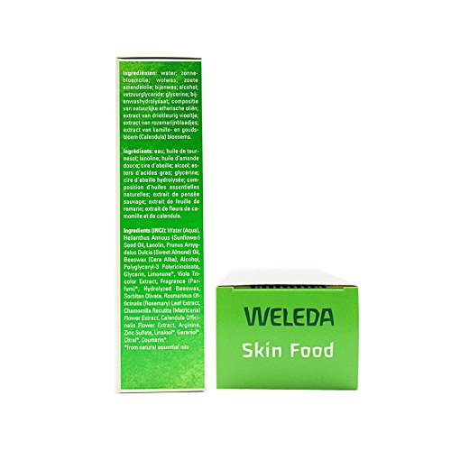 Voedt en verzorgt de droge en ruwe huid` – Voedende en herstellende crème – Geschikt voor zowel lichaam als gezicht – Geeft je make-up extra glans Skin Food voedt alle plekjes op het lichaam die ruw en droog zijn. Te gebruiken voor droge knieën en ellebogen, gesprongen lippen, schrale handen, ruwe voeten en zelfs je gezicht. Een ideaal product om overal en altijd bij de hand te hebben. Al jaren favoriet – ook bij celebs en visagisten! Vijf goede redenen om te kiezen voor Skin Food 1. 100% natuurlijk 2. Doeltreffende alles-in-één crème 3. Herstelt en beschermt de droge, ruwe huid 4. Favoriet van celebs en visagisten 5. Succesformule sinds 1926.